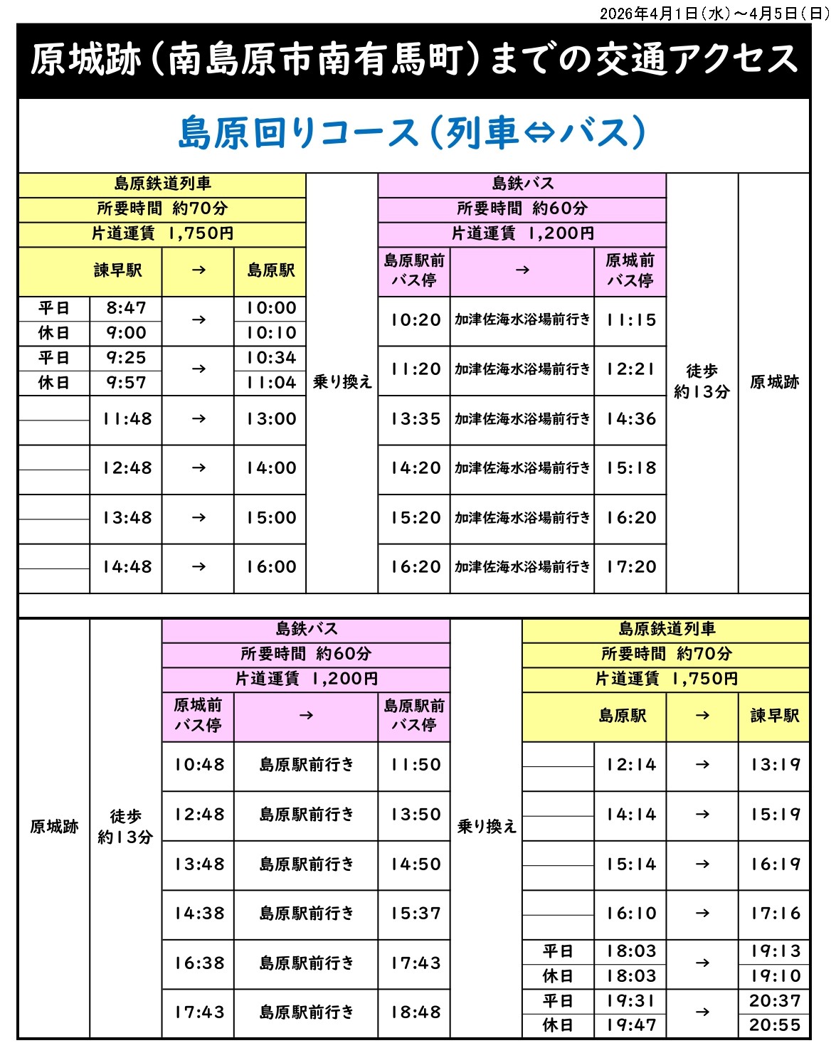 这里为您介绍前往原城遗迹的交通方式,原城遗迹是世界遗产“长崎和天草地区的隐匿基督徒相关遗产”的构成资产之一。